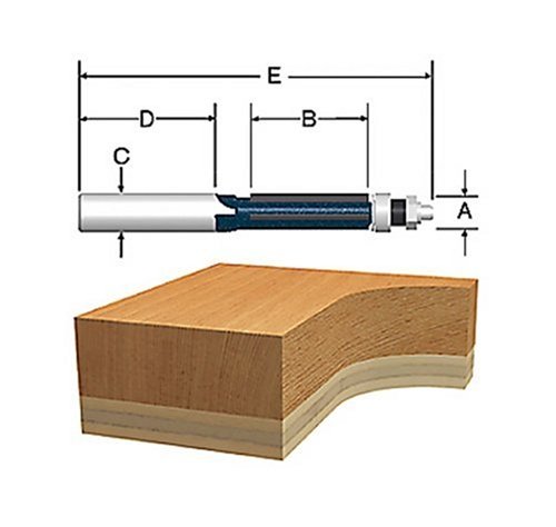 Bosch 85602M 1/2" Carbide Tipped Triple Flute Trimming Bit Bosch Power Tools and Accessories is one of the divisions within the Robert Bosch Tool Corporation, which is one of the largest power tool and accessory manufacturers in the world. Bosch provides a complete line of corded and cordless power tools and accessories engineered to survive any jobsite and allow professionals to take control of their work. Bosch 85602M 1/2" Carbide Tipped Triple Flute Trimming Bit. Features: Carbide tipped triple flute trimming bit is a micrograin bit for laminate trimming and trim cuts on heavier work when cutting with a templet. Can be used with 2 ball bearings to widen the bearing surface and reduce templet wear Carbide Tipped Triple Flute Trimming Bit Item # 85602M A. Overall Diameter 1/2 Inch B. Cutting Edge Length 1-1/2 Inch C. Shank Diameter 1/2 Inch D. Shank Length 2 Inch E. Overall Length 4-1/2 InchThis website is a participant in the Amazon Services LLC Associates Program, an affiliate advertising program designed to provide a means for sites to earn advertising fees by advertising and linking to amazon.com